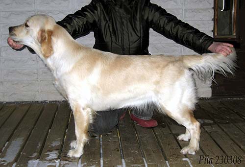 -4 år gammal tik, välskuret huvud, härlig uttryckt. Kraftfull helhet med fin balans. Harmoniskt vinklad fram och bak. Välformad bröstkorg. Fin överlinje. Rör sig med flott steg och fin parallellitet.- |